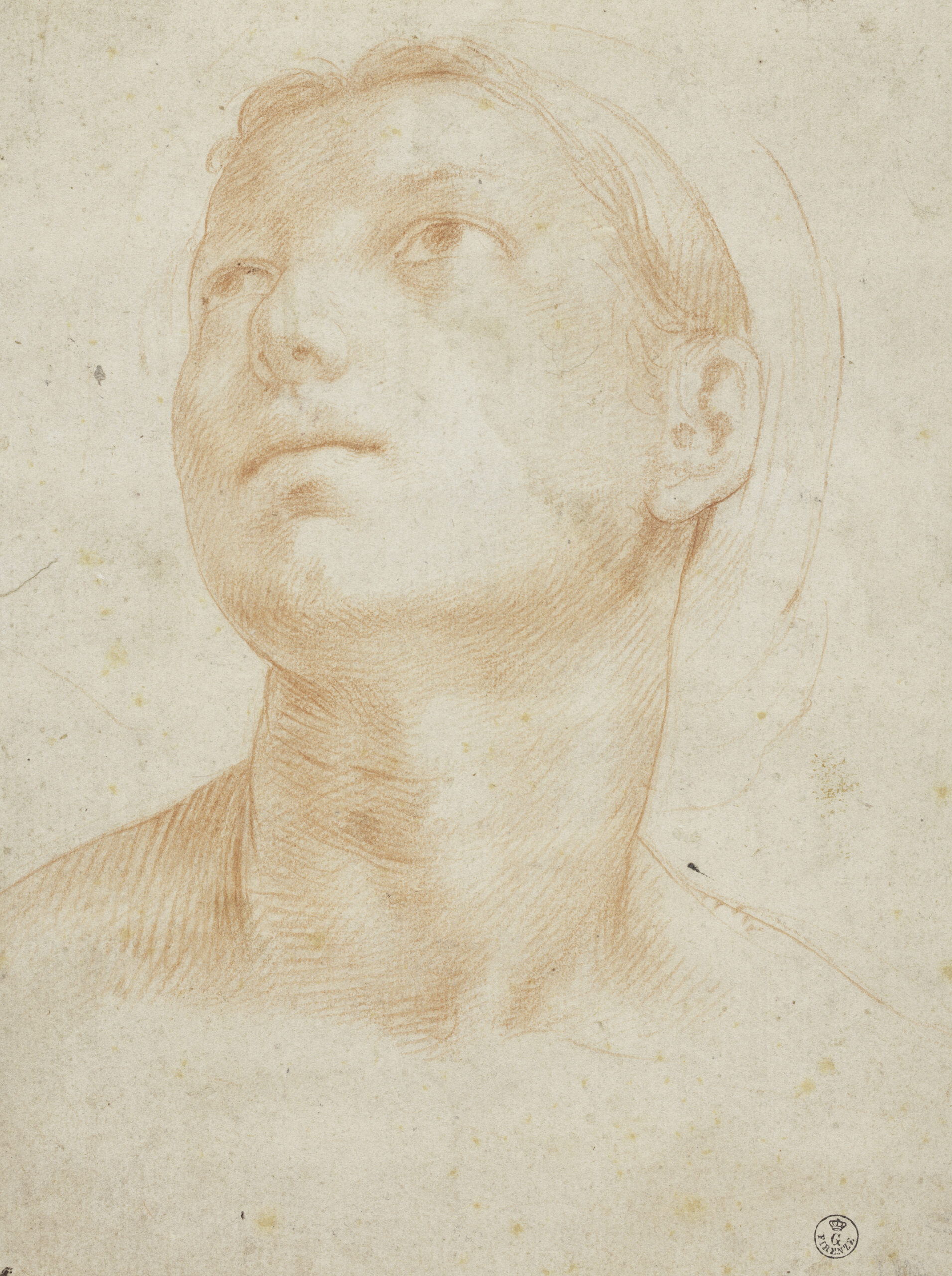 Attributed to Pier Francesco Foschi (copy after Andrea del Sarto), head of a woman, red chalk, Gabinetto dei Disegni e delle Stampe delle Gallerie degli Uffizi.